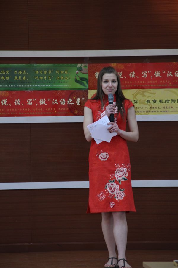 在才艺展示部分,选手们带来了中国歌曲、民族舞蹈、绕口令、快板、唐诗、现代诗歌、武术等表演。太阳同学的一段双节棍表演拉开了比赛的序幕,克妮娅同学的舞蹈《茉莉花》为我们带来了春日里的一缕幽香,雪莱同学的新疆舞让我们仿佛置身于舞蹈之乡,黑大力同学带来的快板《句句黑》赢得了全场观众的掌声,朱利安同学深情地朗诵了新版《乡愁》、表达了对自己国家和中国的喜爱。