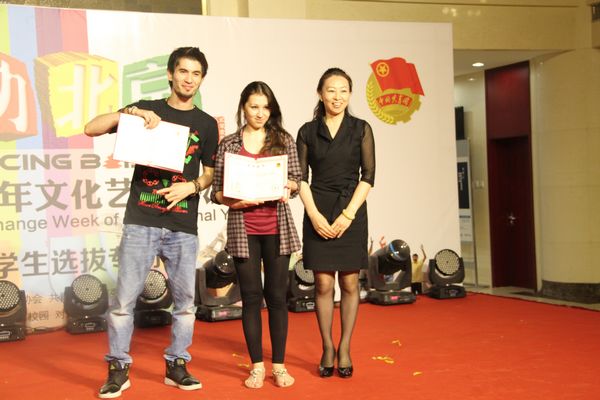 2013年6月16日下午2点,“欢动北京”2013国际青少年文化艺术交流周留学生节目选拔专场在对外经济与贸易大学举行。我校留学生中心郭凯琳老师带领我校8名学生参加了比赛。