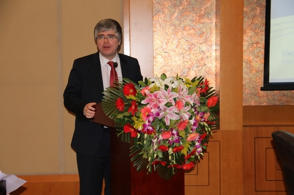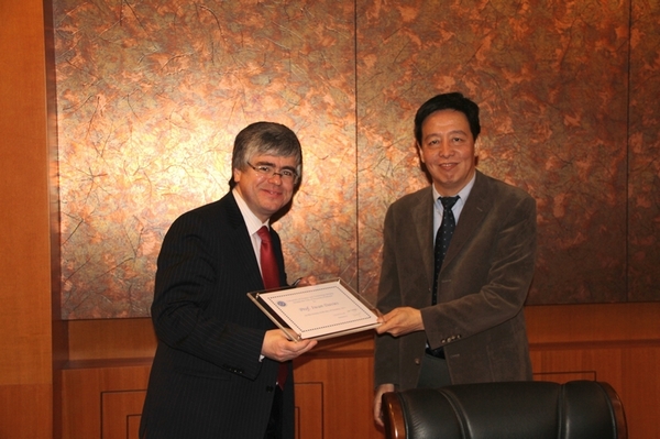 Davies 校长随后以“大学在促进经济发展中的角色 — 国际化的挑战”为题做了精彩的特邀报告,介绍了斯旺西大学在应对国际化的挑战中采取的战略和做法,分享了他们取得的成绩和经验。 在一片热烈的掌声中, 罗书记代表学校向 Davies 校长颁发了名誉教授证书