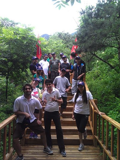 骑游活动结束后,在大会主办方的安排下留学生们又游览了北京松山国家级自然保护区。松山自然保护区内群山叠翠,古松千姿百态,山涧溪水淙淙,谷中山石嶙峋,生物多样性丰富,保存有华北地区唯一的大片珍贵天然油松林。留学生们在大自然中,呼吸着新鲜的空气,欣赏着大自然鬼斧神工的美景,享受着爬山的乐趣。兴奋的留学生们,载歌载舞,气氛高涨。