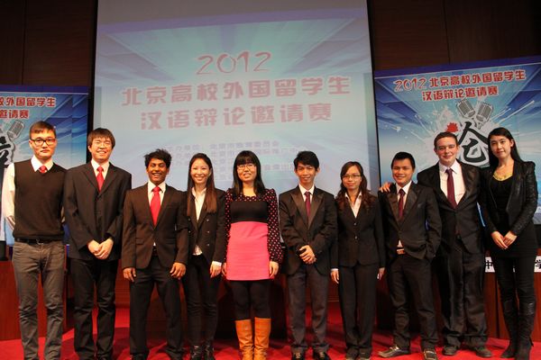 2012年11月8日,2012北京高校外国留学生汉语辩论邀请赛复赛在北京语言大学逸夫报告厅举行。我校留学生代表队对阵中央民族大学留学生代表队,我校题目是婚姻关系中,男性更需要被关怀,对方题目是婚姻关系中,女性更需要被关怀。我校留学生代表队由国际处郭凯琳老师领队,蒙古留学生罗恩君担任一辩、孟加拉留学生瑞江明担任二辩、玻利维亚留学生柯毅担任三辩和蒙古留学生董娜珉担任四辩。