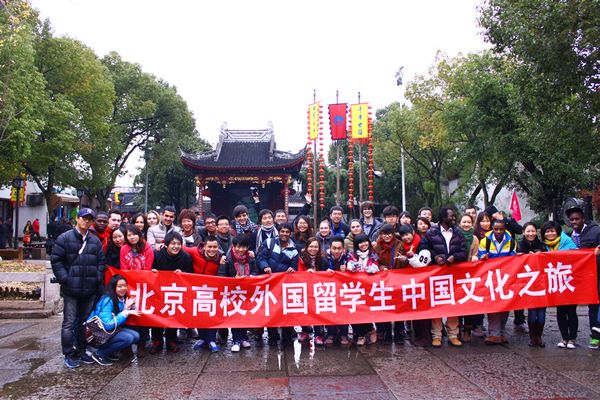 为激励 2012 北京市高校留学生汉语之星大赛和高校留学生汉语辩论邀请赛中涌现出的优秀留学生,帮助他们感受和学习中国文化,进一步认识中国文化的多元性,北京市国际教育交流中心于 2012 年 11 月 26 日到 12 月 1 日举办了“北京高校外国留学生中国文化之旅——江苏行”活动。来自 15 所高校的 60 多名留学生和带队老师参加了此次文化之旅。