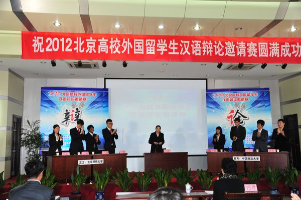 2012年10月28日第四届北京高校留学生汉语辩论邀请赛初赛在我校会议中心会议楼二层报告厅举办。北京高校留学生汉语辩论邀请赛从2009年至2011年已经成功举行三届,由北京市教委主办、北京市汉语国际推广中心承办。本次比赛总共分为五大环节:预赛、初赛、复赛、半决赛和决赛,今年共有20所北京高校派出留学生代表队参与比赛。